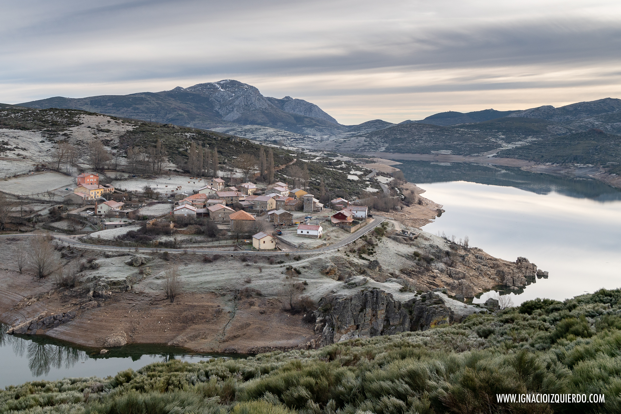 La mañana despertó con esa limpieza en el aire que solo puede traer el frío. Las colinas secas, ya abandonadas por el otoño, brillaban escarchadas mientras en el cielo un manto fino y delicado de nubes impedían que el ambiente se calentara lo más mínimo. La calefacción del coche hacía lo que buenamente podía por llevar su interior a condiciones mínimas de habitabilidad y atrás quedaba Alba de los Cardaños, petrificada y sin intención de despertar hasta que el sol abandonara la somnolenca. Ni siquiera el viento se había levantado de la cama tal y como atestiguaba el espejo en que se había convertido el embalse de Camporredondo.