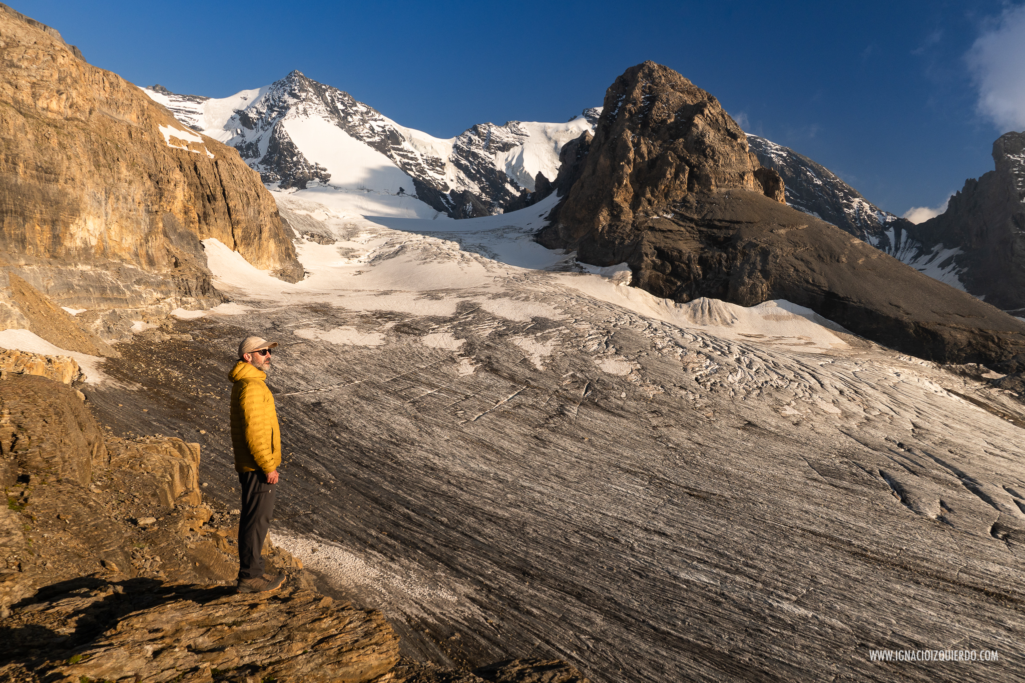 Atardecer sobre el glaciar de Blümlisalpgletscher desde cerca del refugio de Blümslisalp Hut (2835 m.)
